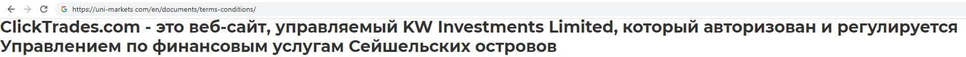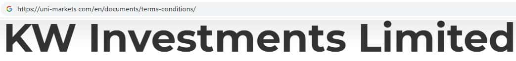 Юридическое лицо KW Investments Limited владеет мошенническим интернет-сервисом uni-markets com, компании ЮНИ Маркетс, у которой оффшорная регуляция.