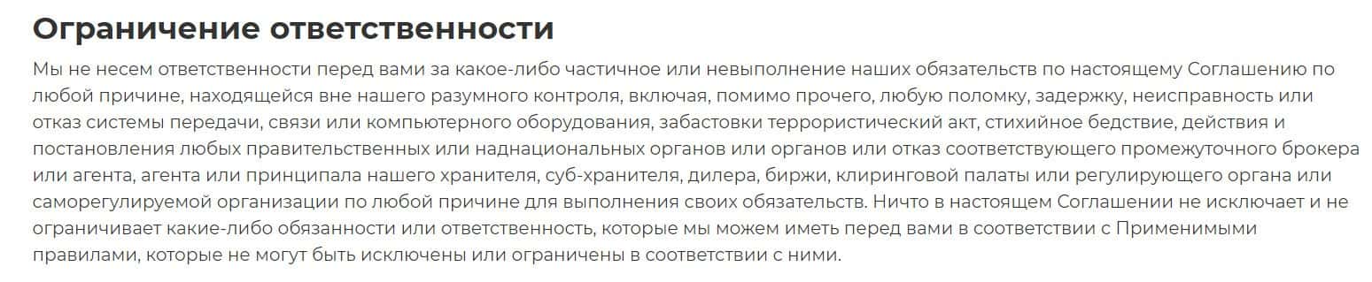 Согласно тому, что жулики пишут в договоре, контора ЮНИ Маркетс не несет никакой ответственности за не полученную прибыль клиентом, а также за возможные убытки.