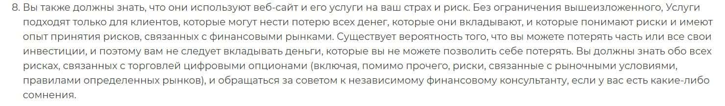 Аферисты UNI Markets предупреждают о том, что торговля на их сайте сопряжена высоким уровнем риска потери средств, за что компания конечно же ответственности не несет.