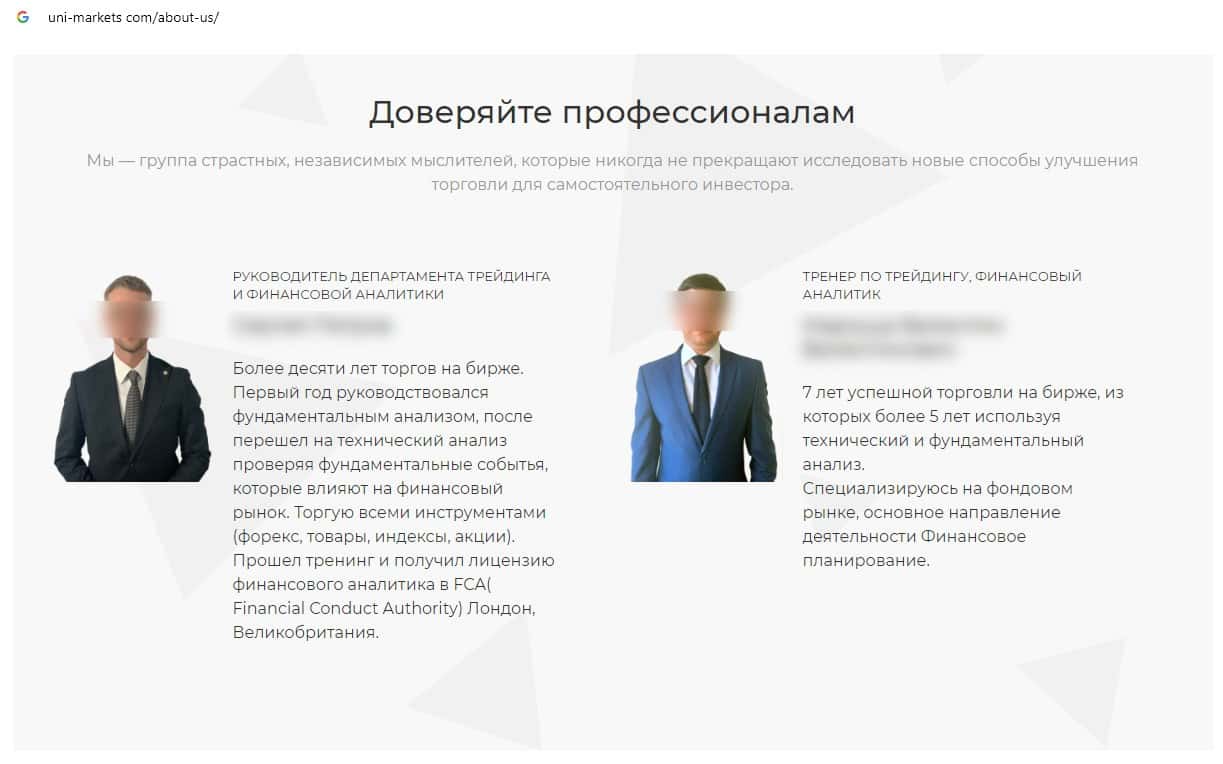 Информация о руководстве скам-организации ЮНИ Маркетс