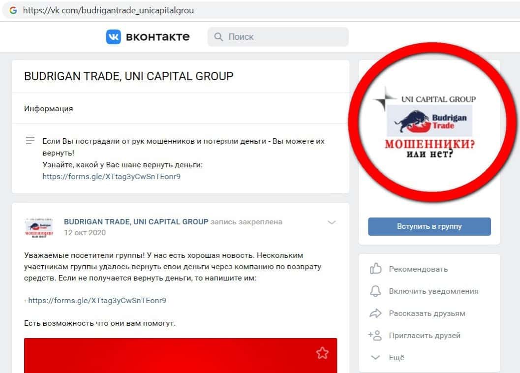 Мошенники ЮНИ Маркетс разводят пользователей всемирной паутины совместно с жуликами BudriganTrade, которым также доверять не рекомендуем.