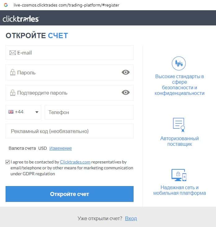 При регистрации на сайте ЮНИ Маркетс осуществляется переход на веб-портал мошенников ClickTrades, из этого следует вывод о том, что это одна и та же организация.