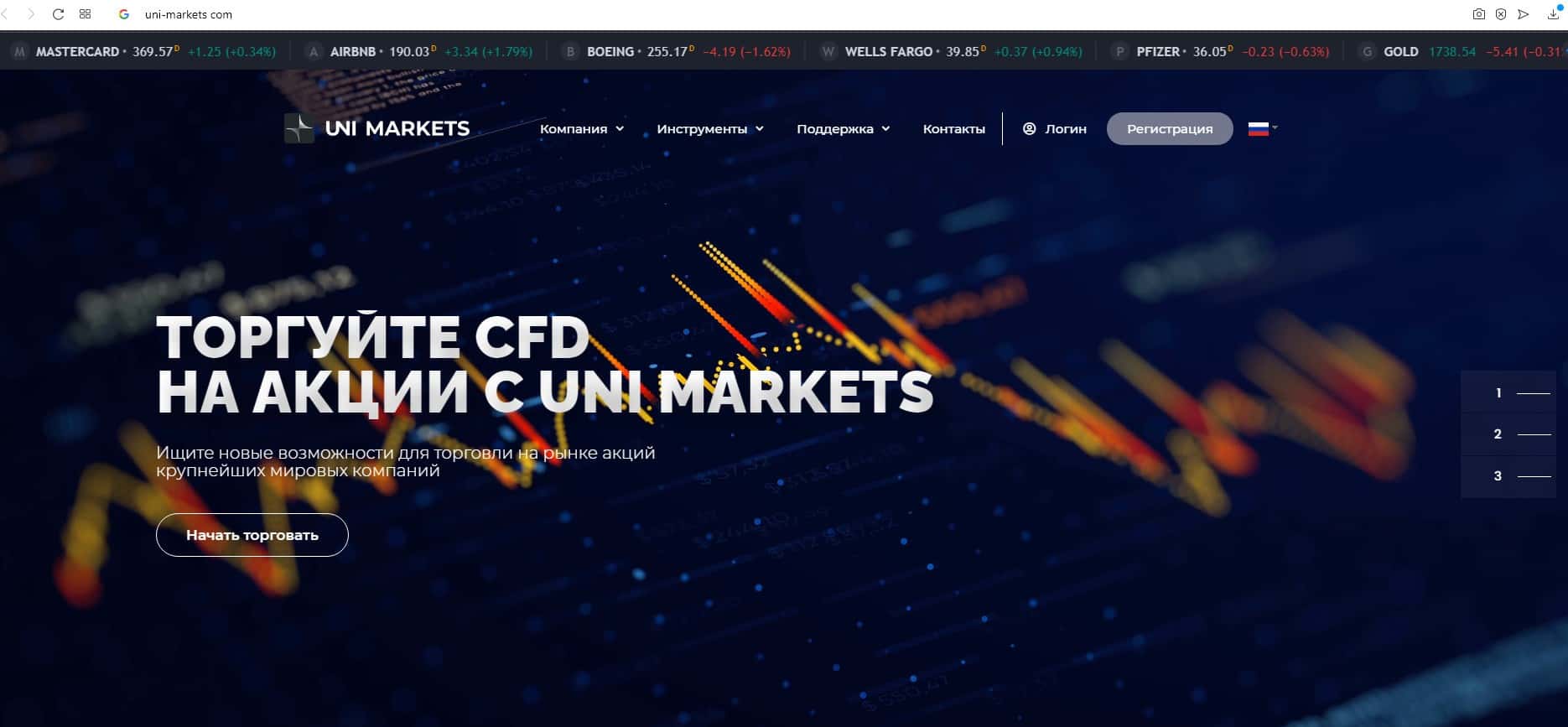 В данном разделе предлагаем увидеть скрин главной веб-страницы онлайн-сервиса скам-брокера ЮНИ Маркетс, помните о том, что проекты часто меняют название домена своего сайта.