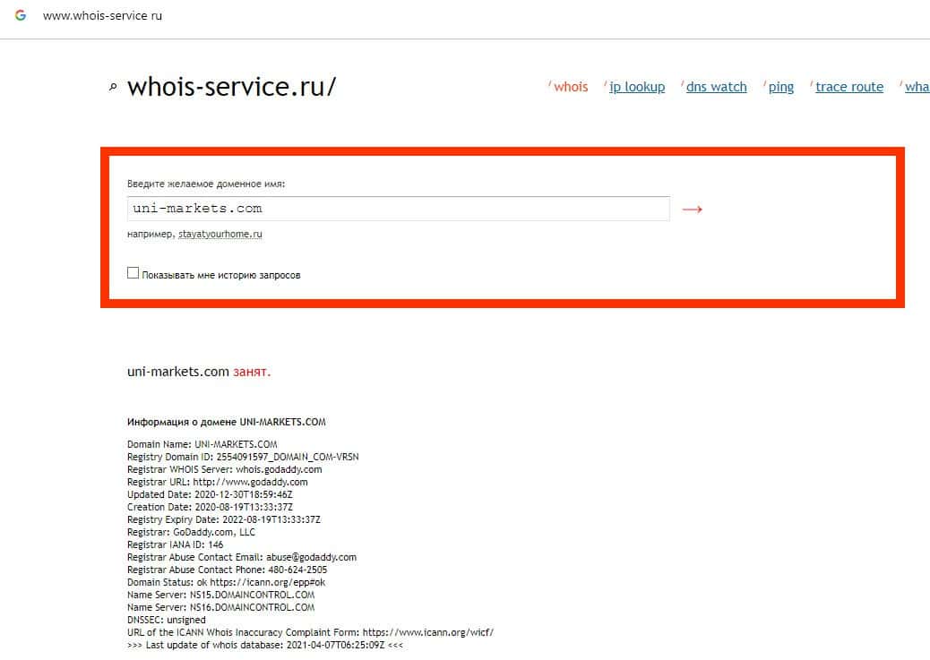 Проведя анализ данных по сайту жуликов UNI Markets, не было отыскано информации о владельце домена, что является еще одним признаком того, что имеем дело с Форекс-кухней.