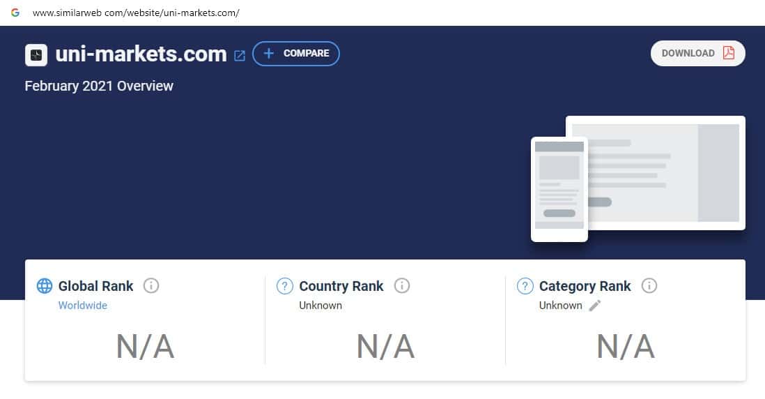 При проверке источников бренда по странам компании ЮНИ Маркетс на сайте similarweb com, информация отсутствует, что является признаком фейкового лохотрона.