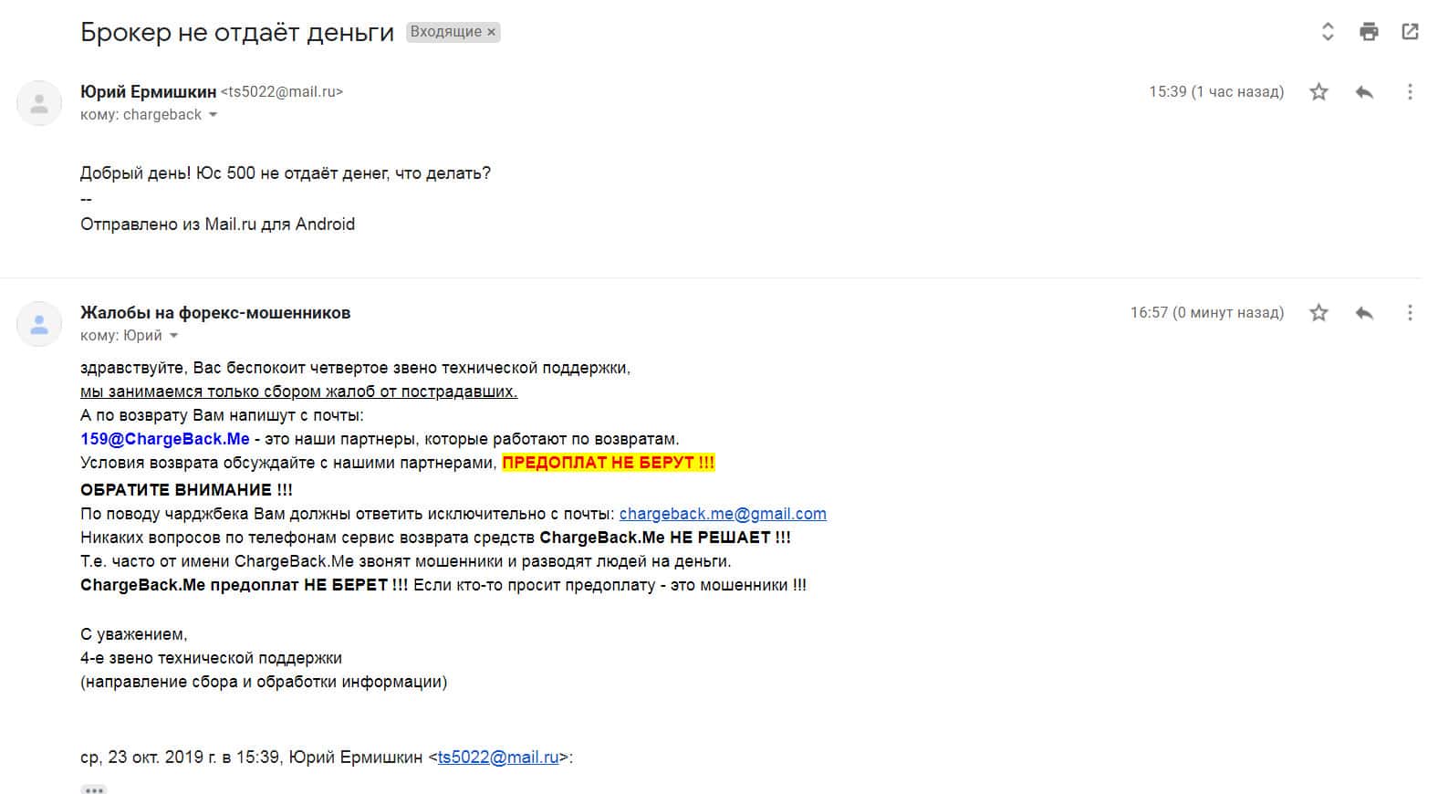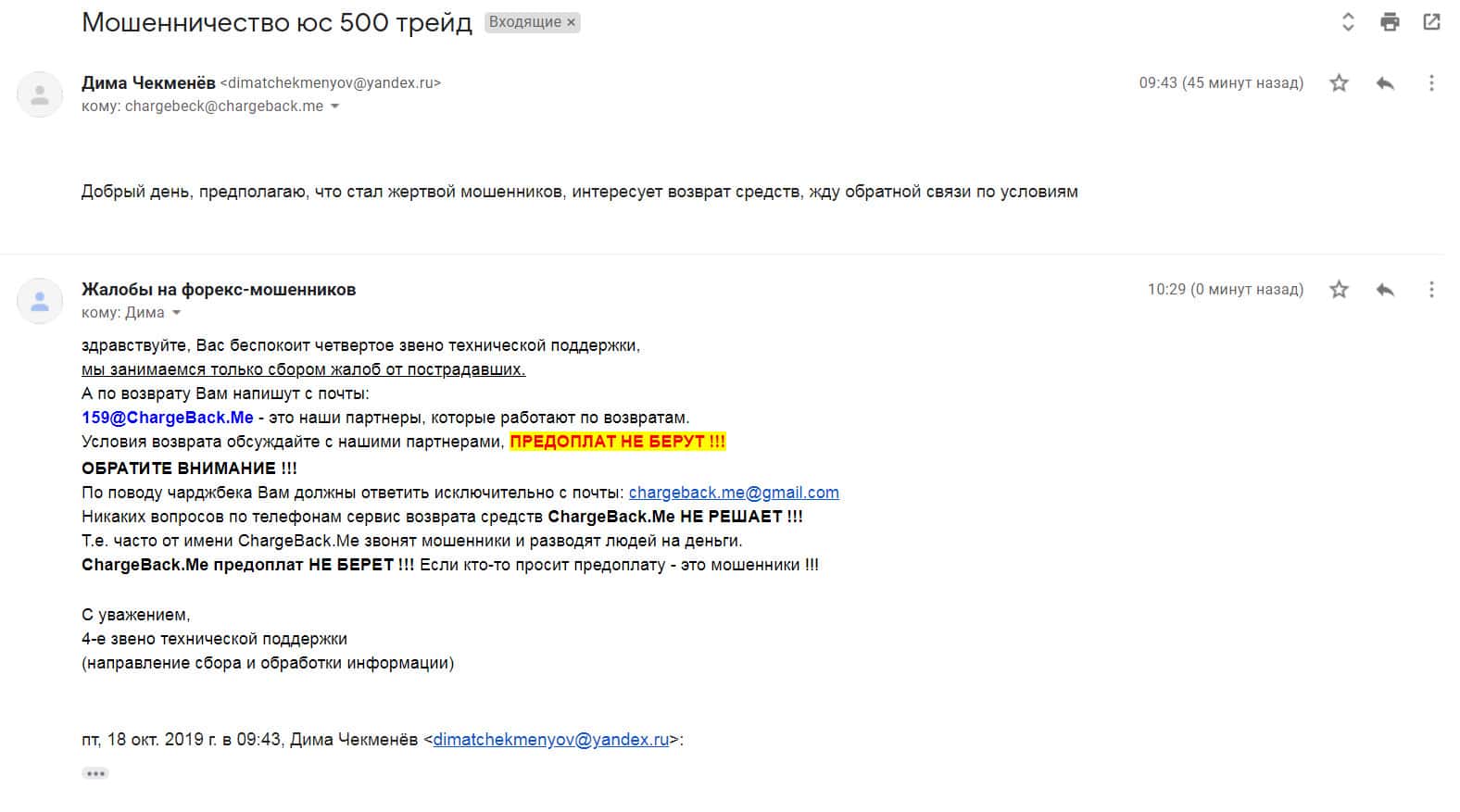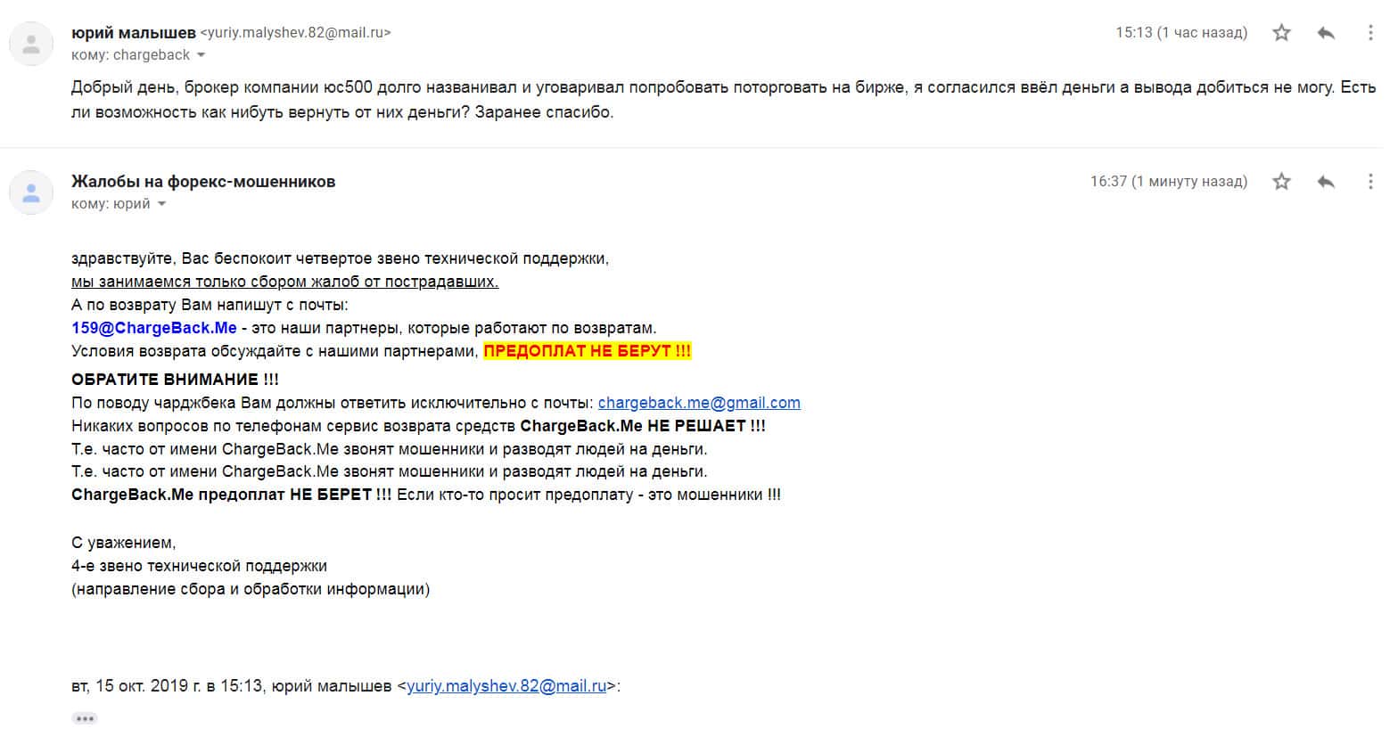 - Отзыв о бесполезной конторе ЮС 500 Трейд