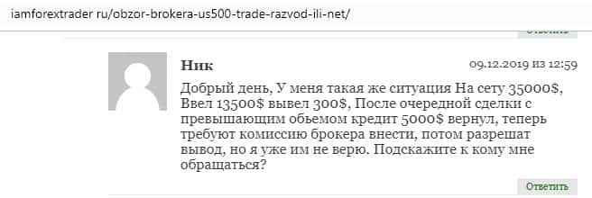 Жалоба на ЮС Трейд 500 - клиенту не выводят 20 000$