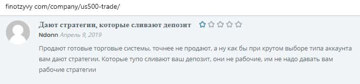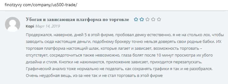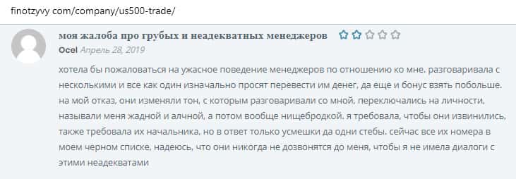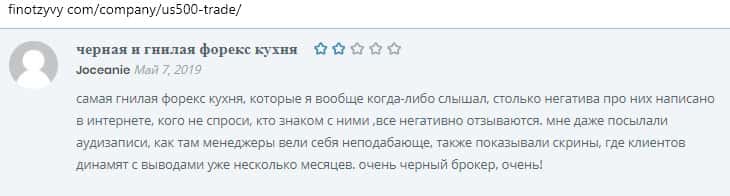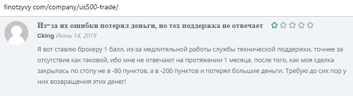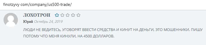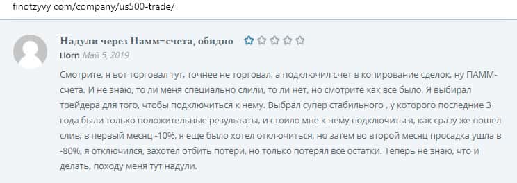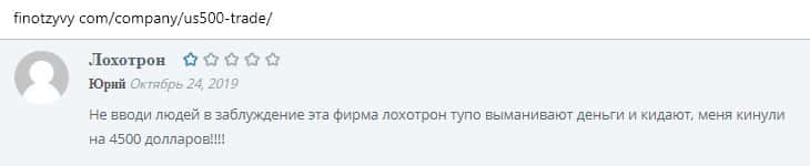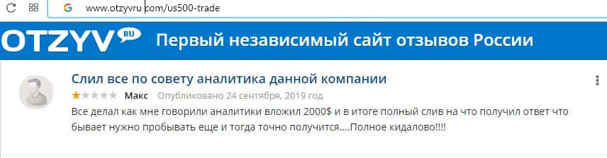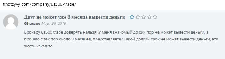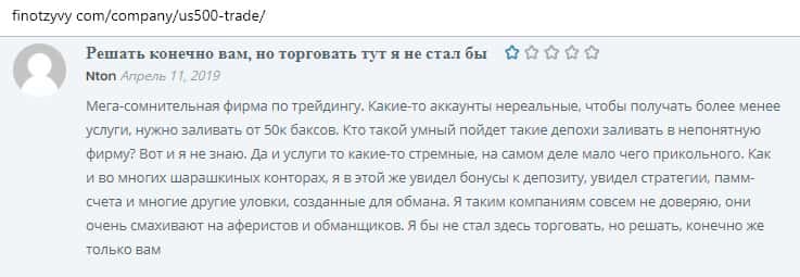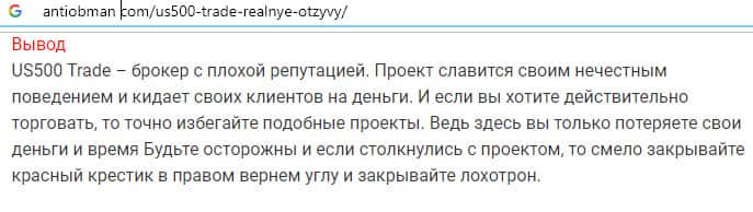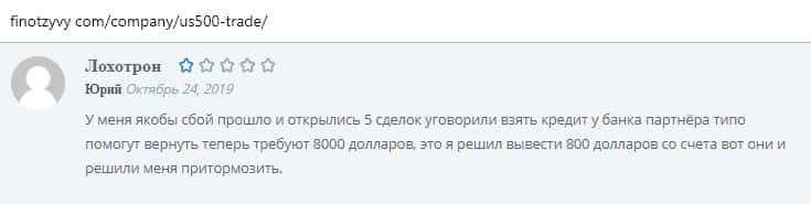 - Отрицательный отзыв касательно работы шараги US500 Trade