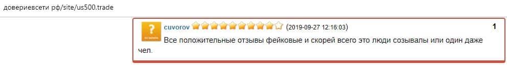 - Шарашкина контора US500 Trade использует фейковые положительные отзывы