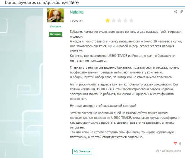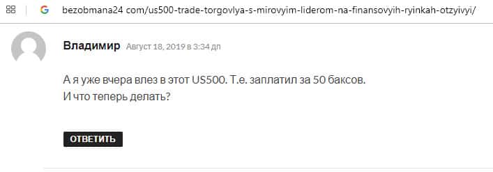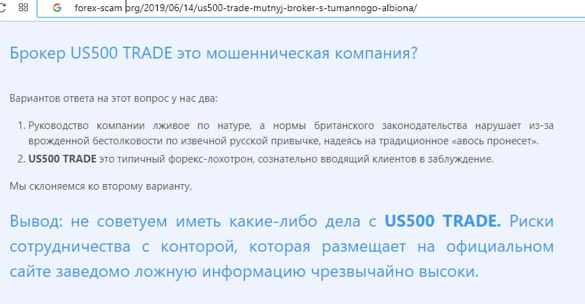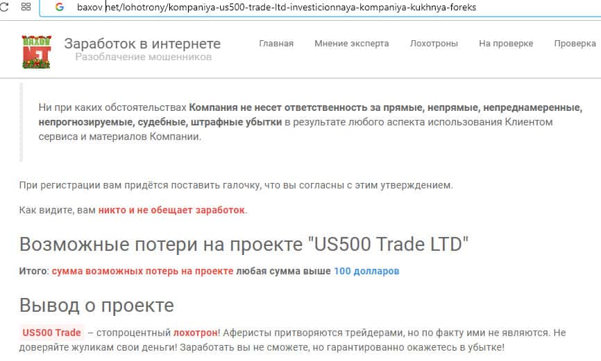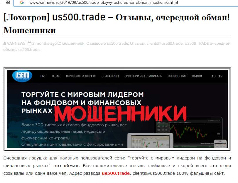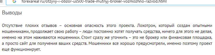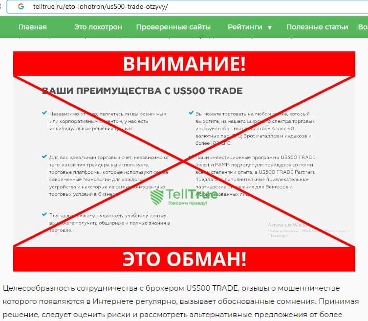 - Лохотрон US500 Trade не тот, за кого себя представляет