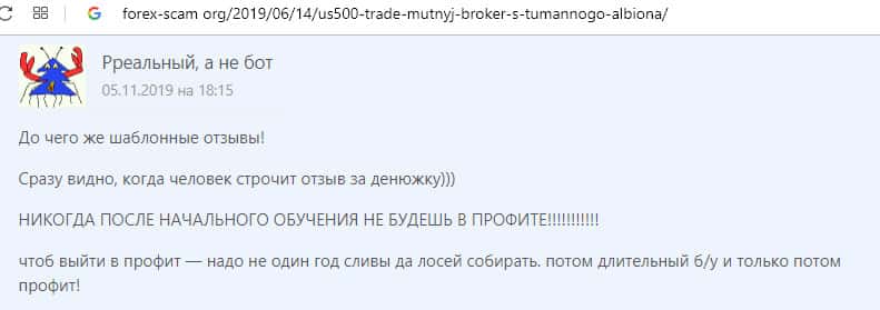 - Аферисты ЮС 500 Трейд использую шаблонные положительные отзывы