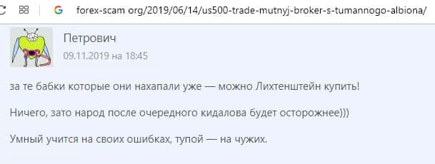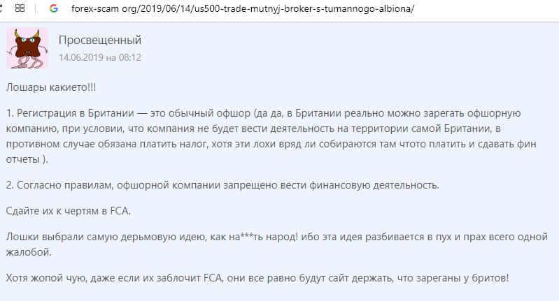 - Вывод от авторитетного ресурса касательно шараги ЮС 500 Трейд