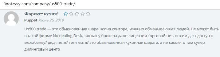- Обобщающий отзыв касательно деятельности лохотрона US500 Trade