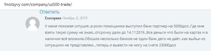 - Аферисты ЮС 500 Трейд вогнали клиентку в долги на 5000 долларов