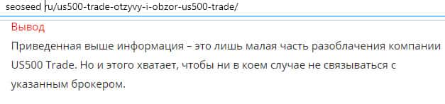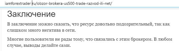 Вывод от авторитетного ресурса касательно шараги ЮС 500 Трейд