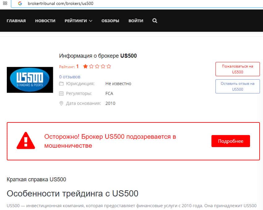 - Брокерская контора US500 Trade подозревается в мошенничестве