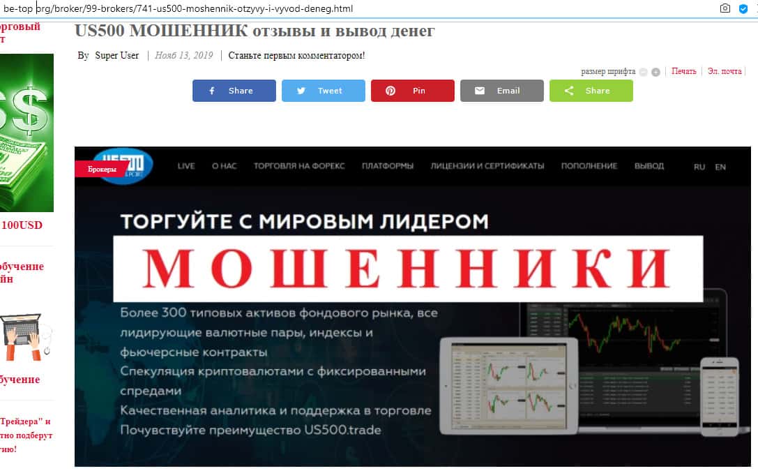 Обзор сайта форекс-жуликов ЮС 500 Трейд
