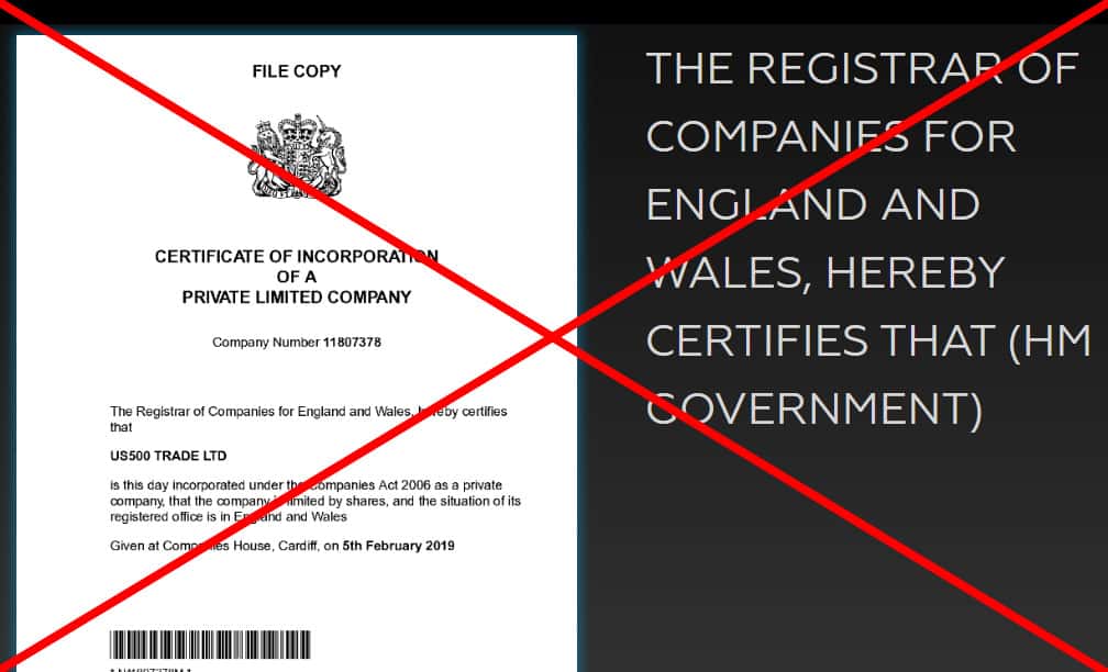Как указывает мошенническая контора US500 Trade у себя на сайте, они разрешены юрисдикцией Великобритании и там же и регулируются. но когда переходишь по указанным ссылкам, то можно увидеть только документы о создании компании и то они попросту могут быть скопированы. А вот лицензией тут и не пахнет.