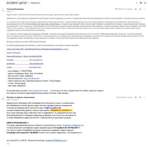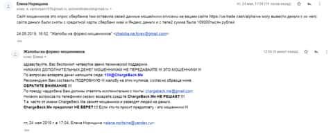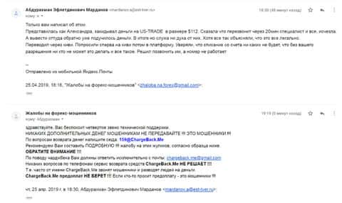 Информационный материал в виде жалобы на аферистов в лице конторы ЮС-Трейд, который опубликован далее, также был написан человеком, утратившим деньги в данном форекс-лохотроне. И теперь для того, чтобы вернуть свои средства, клиенту нужно обращаться в ChargeBack.Me