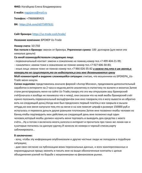 Подробная жалоба на мошенническую контору US Trade