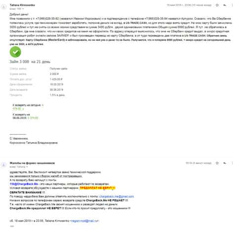 История с украденными 7000 рублей началась со звонка аферистов US-Trade, которые предложили вложить денег, чтобы попробовать как работает система. Но они на этом не остановились и стали требовать взять кредит. После, человек передал все подробности в организацию ChargeBack.Me