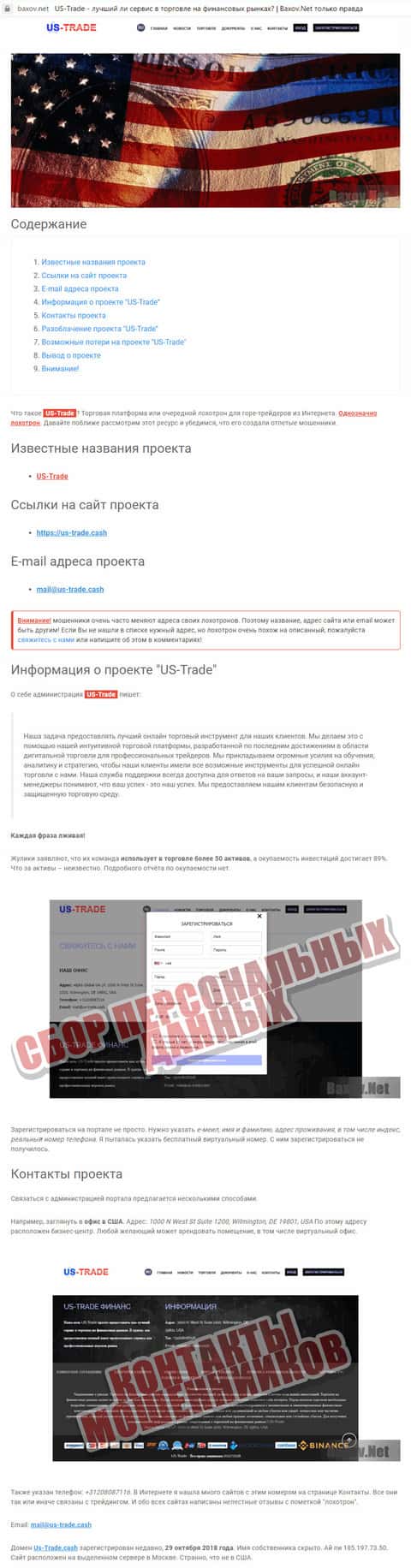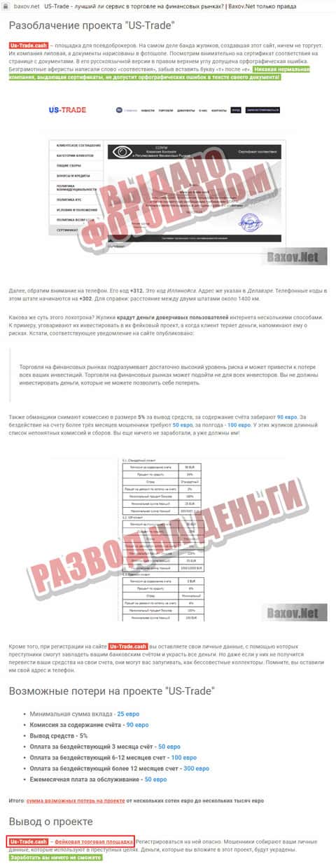 - Веб-портал baxov net опубликовал статью о мошенниках US-Trade Cash