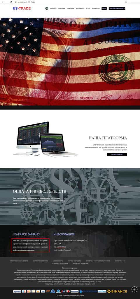 - Интернет-ресурс мошеннической конторы US-Trade Cash
