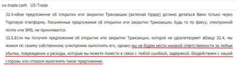 Аферисты US-Trade Cash снимают с себя любую ответственность за потери клиентов