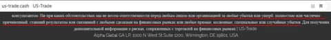 - Аферисты US-Trade Cash снимают с себя любую ответственность за потери клиентов