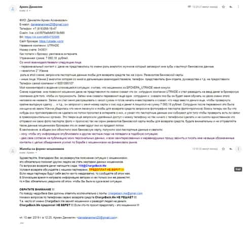 - Шарлатаны ЮТрейд обманывают людей услугой чарджбека