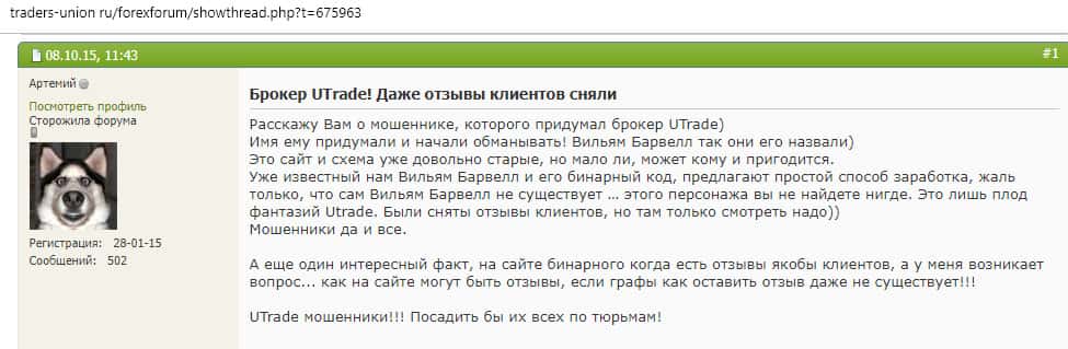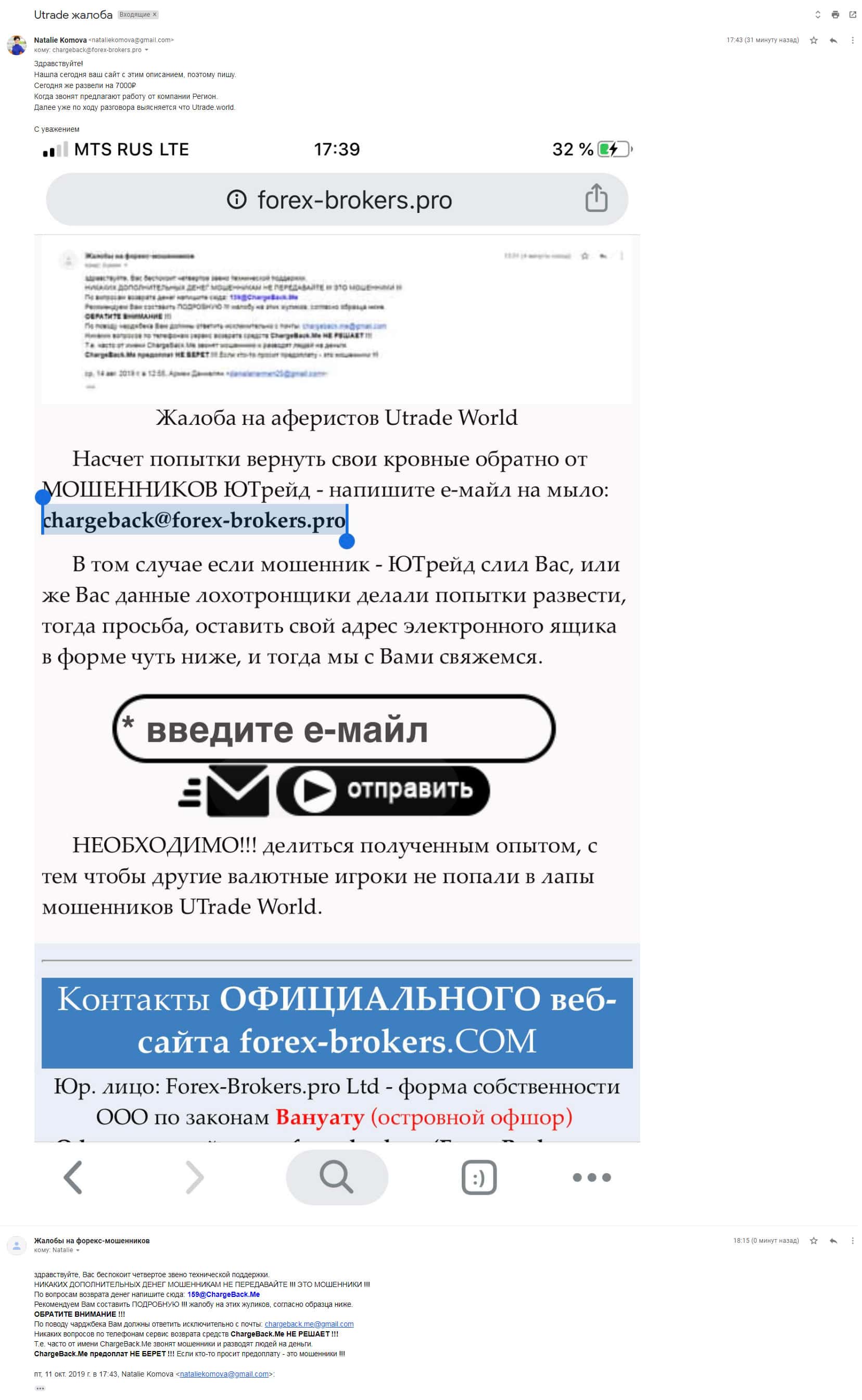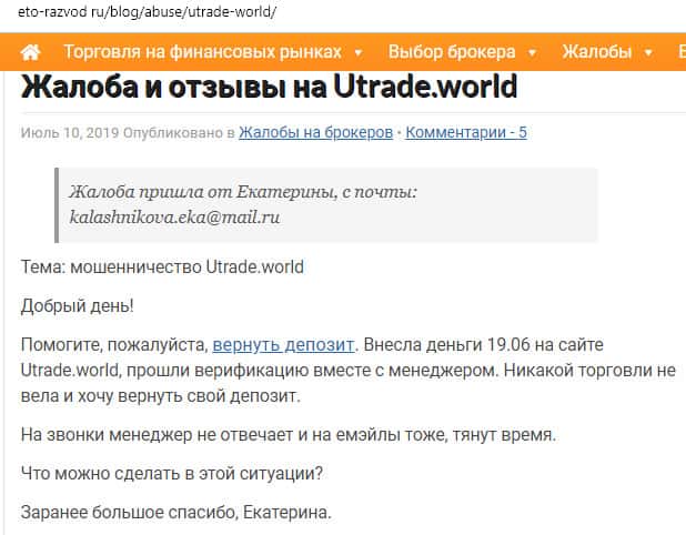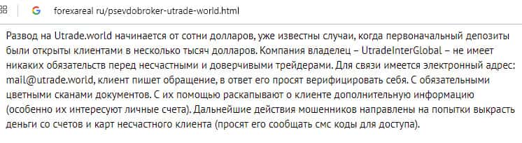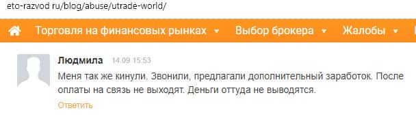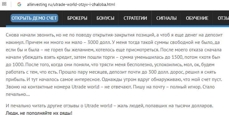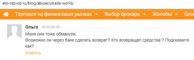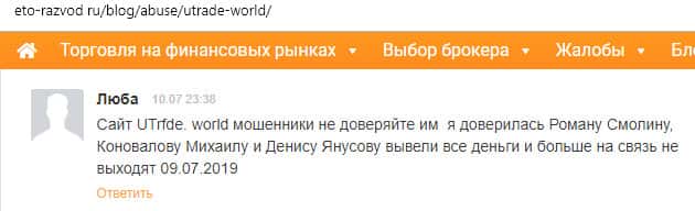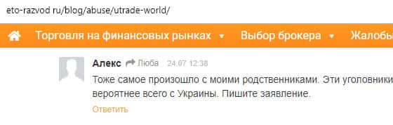 Отзыв о кидалове со стороны шарлатанов UTrade World