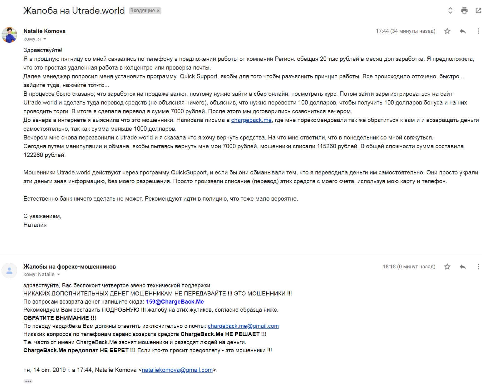 - Жалоба на на аферистов Ютрейд Ворлд и Регион - клиент утратил несколько тысяч рублей