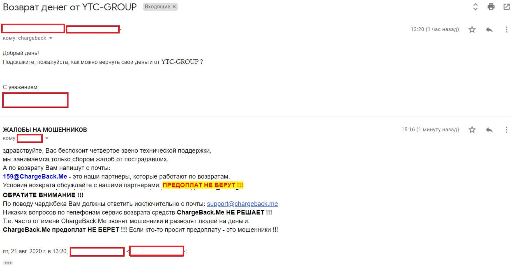 - Жалоба на организацию аферистов YTC Group