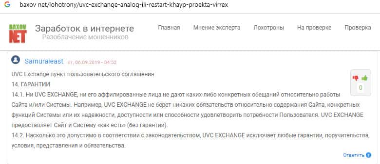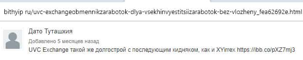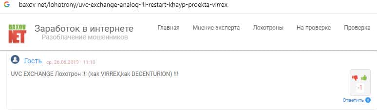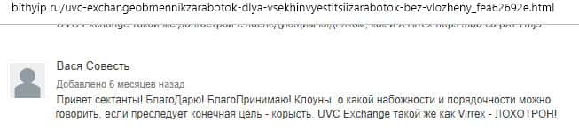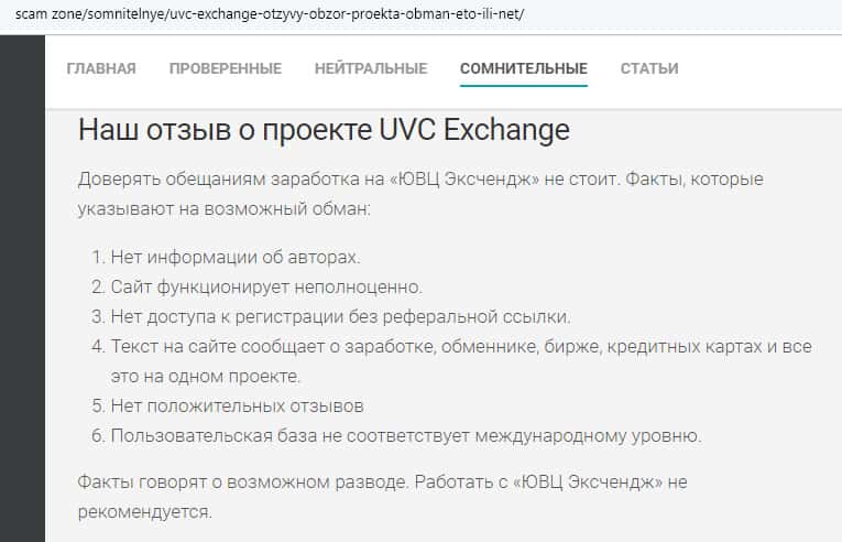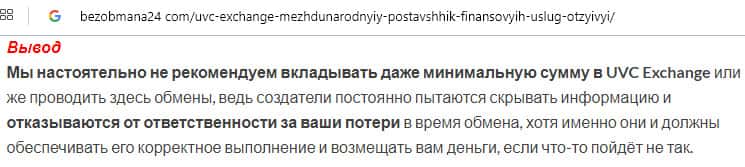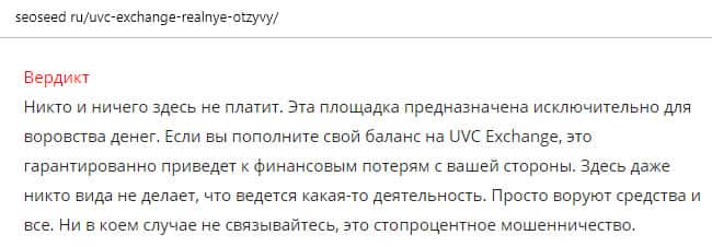 - Вывод о лох-проекте UVC Exchange от авторитетного ресурса