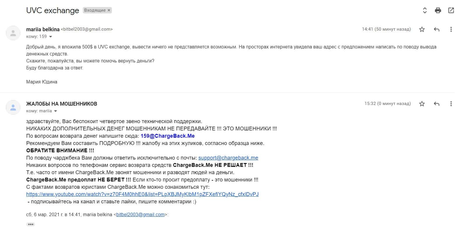 Жалоба в том числе и на аферистов UVC Exchange