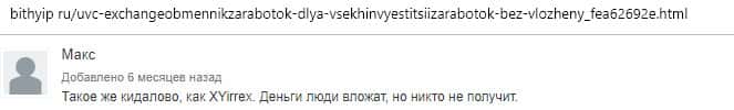- Отзыв о сомнительном проекте ЮВС Эксчендж