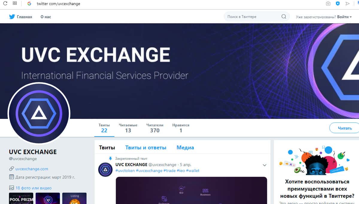 - страничка в Твиттер twitter com/uvcexchange