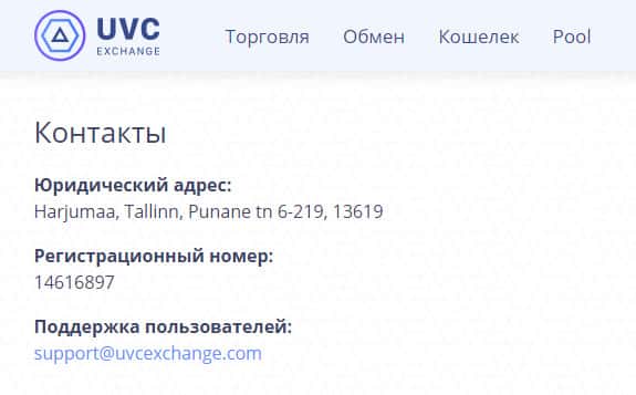 - Контактная информация для связи с криптовалютными шарлатанами UVC Exchange