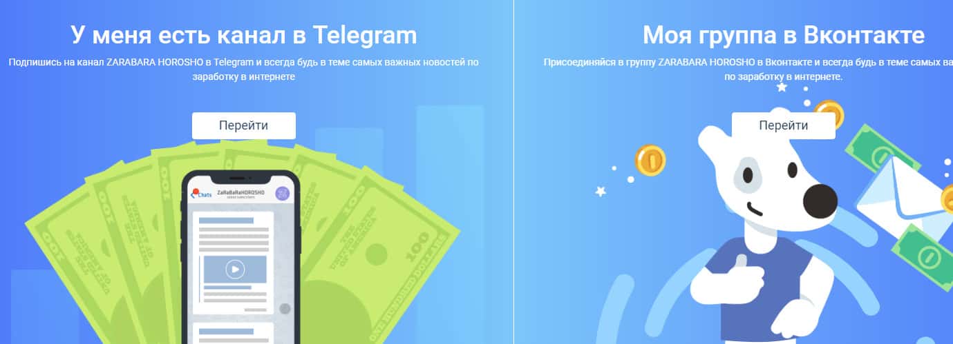 После шулера Зарабара Хорошо предлагают наивной клиентуре подписаться на страницы лохотрона ZarabaraHorosho Ru в социальных сетях, где шулера Зарабара Хорошо и далее будут вешать лапшу на уши о выгодности и прибыльности своего мошеннического проекта. На изображении, расположенном ниже, вы можете увидеть данный раздел сайта жулья.