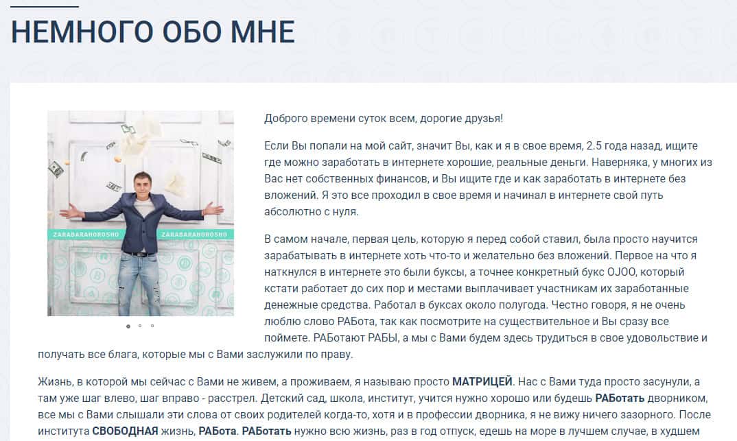 Автор вышеизложенного материала о деятельности проходимцев ZarabaraHorosho Ru