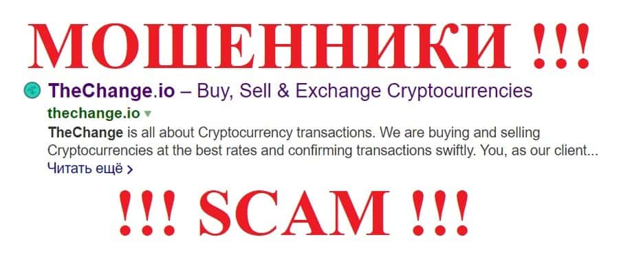 TheChange io - очередная криптовалютная биржа, которая занимается разводом пользователей глобальной сети-интернет на деньги, осуществляя обмен фиатных денег на криптовалюту, после чего даже с помощью юристов деньги пострадавшим вернуть не удастся, судя по пользовательским отзывам действует сообща с псевдо-брокером RIMarkets, более того на жуликов пришла прямая жалоба о том, что мошенники работают в одной связке с аферистами Трендекс. Ни при каких обстоятельствах нельзя иметь никаких дел с жуликами Зе Чэиндж !!!