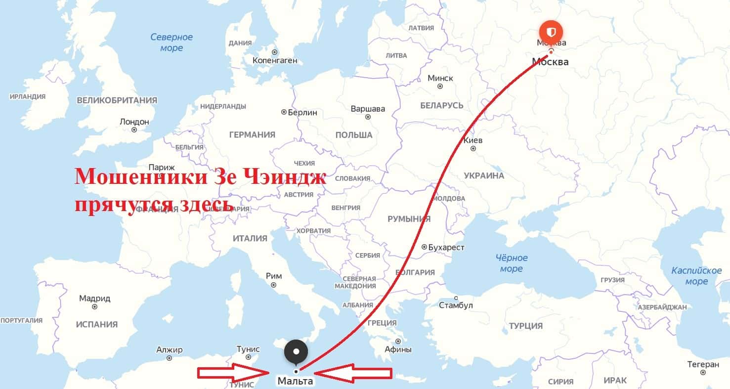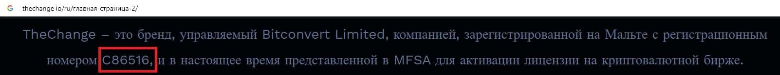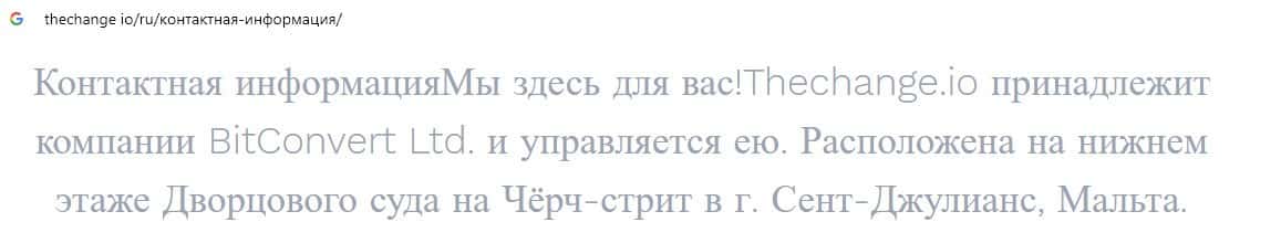 На сайте мошеннической организации TheChange указано, что юридическое лицо, которому принадлежит бренд, зарегистрировано на острове Мальта.
