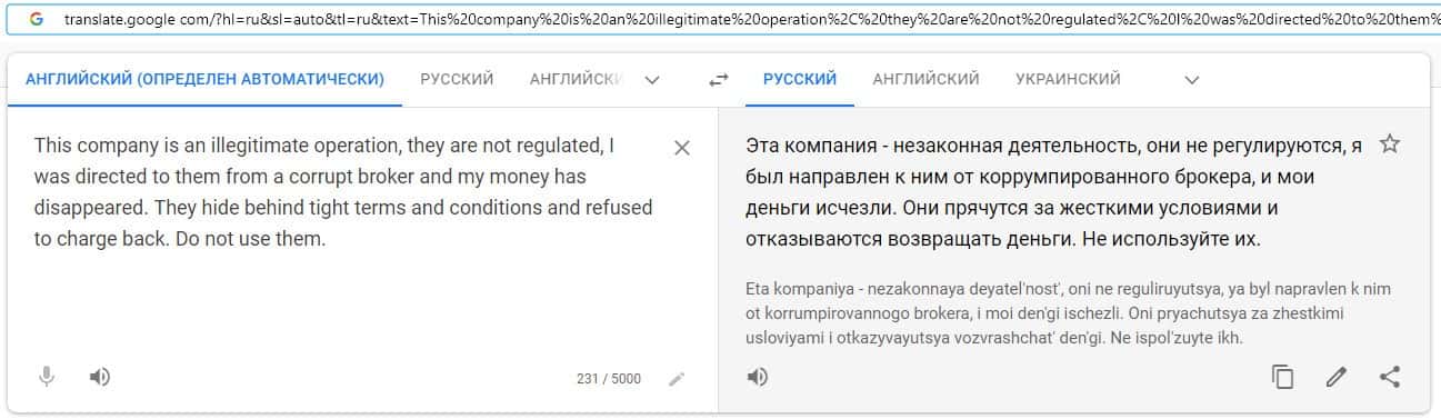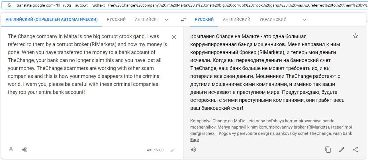 Далее предлагаем ознакомиться с комментарием пользователя о скам-конторе Зе Чэиндж, который был переведен на русский язык о том, что компания ведет незаконную деятельность.