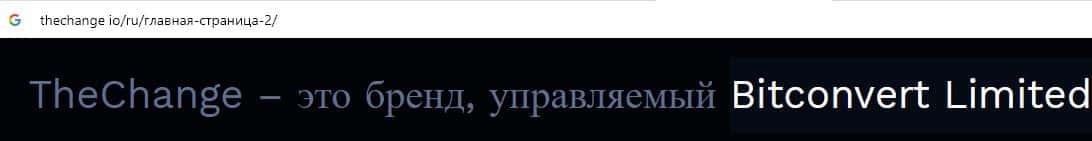 Юридическое лицо Bitconvert Limited владеет мошенническим сервисом thechange io, компании Зе Чэиндж, у которой оффшорная регуляция.