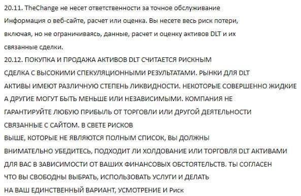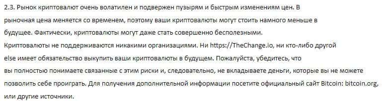 Мошенники The Change уведомляют пользователей о том, что цены на криптовалюты могут меняться, из-за чего Вы можете потерять значительную сумму денежных средств.