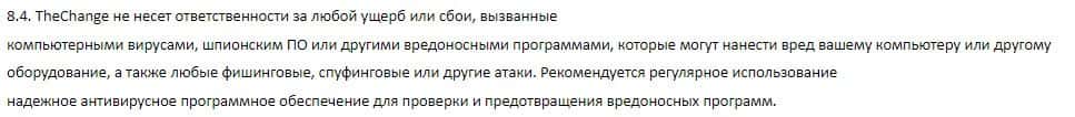 Шулера The Change не дают никаких гарантий того, что использование их сайта безопасно, а также не несут ответственности за возможный ущерб.