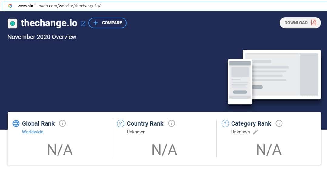 При проверке источников бренда по странам скам-компании Зе Чэиндж на сайте similarweb com, информация отсутствует, что является признаком фейкового лохотрона.