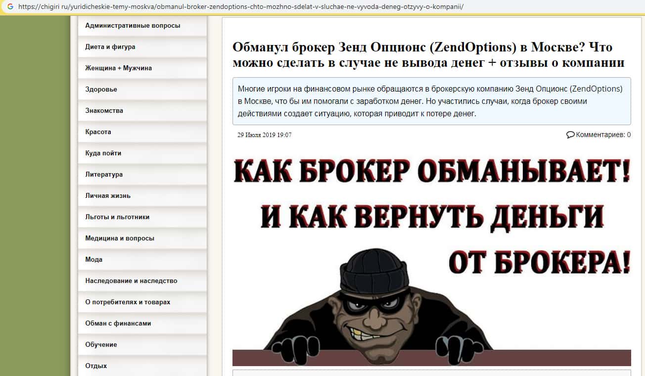 Остатки информации о слившемся шарлатанском брокере ZendOptions