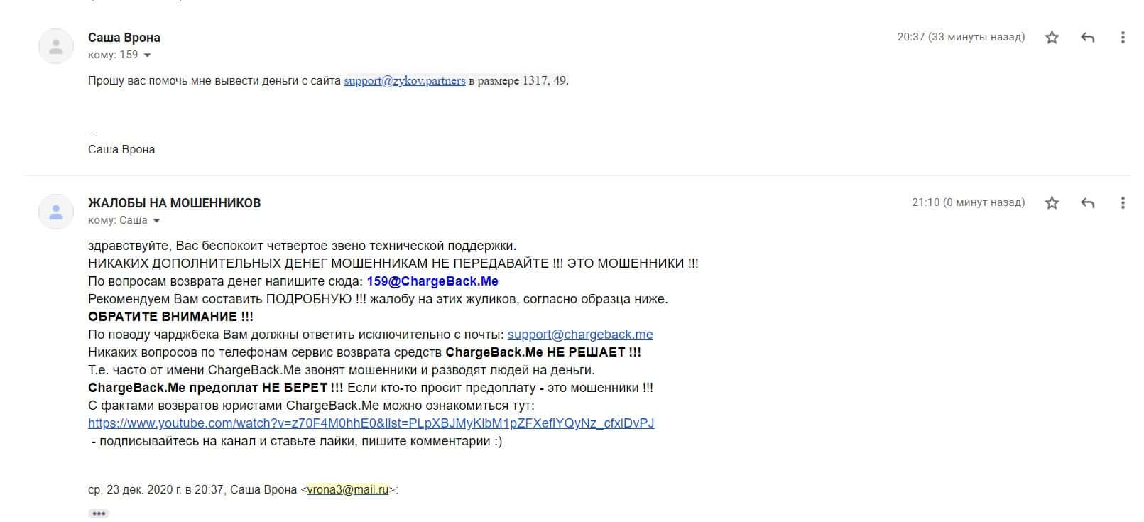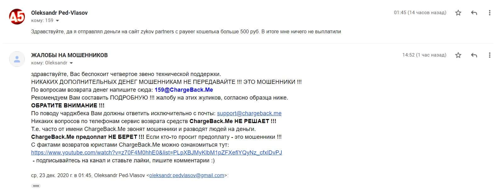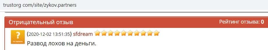 Очередная жалоба на онлайн-аферу Zykov Partners