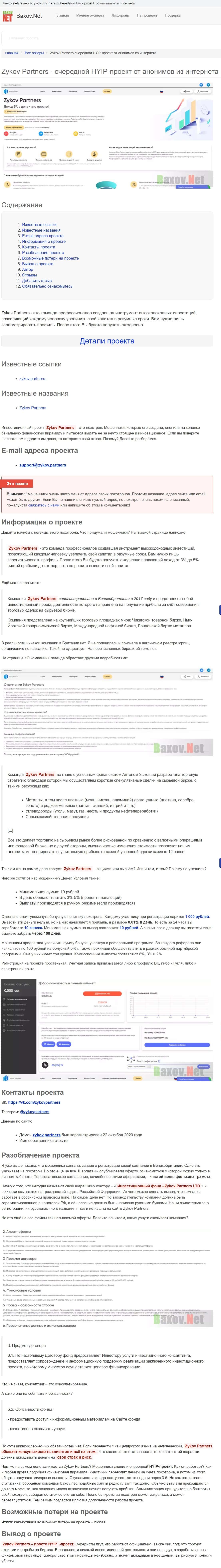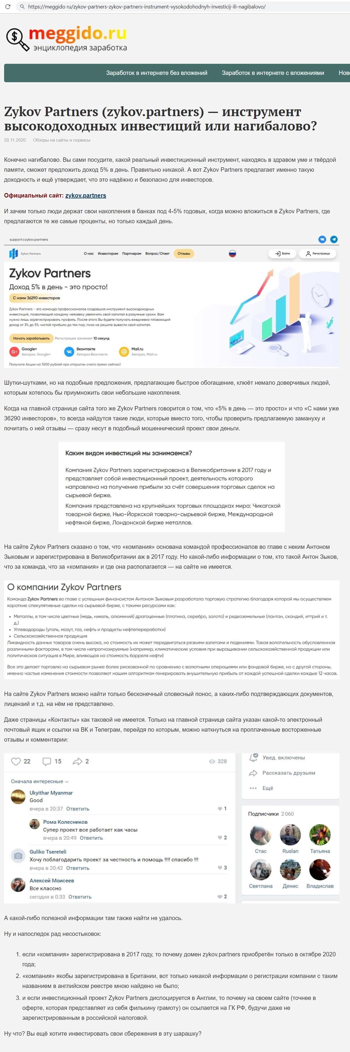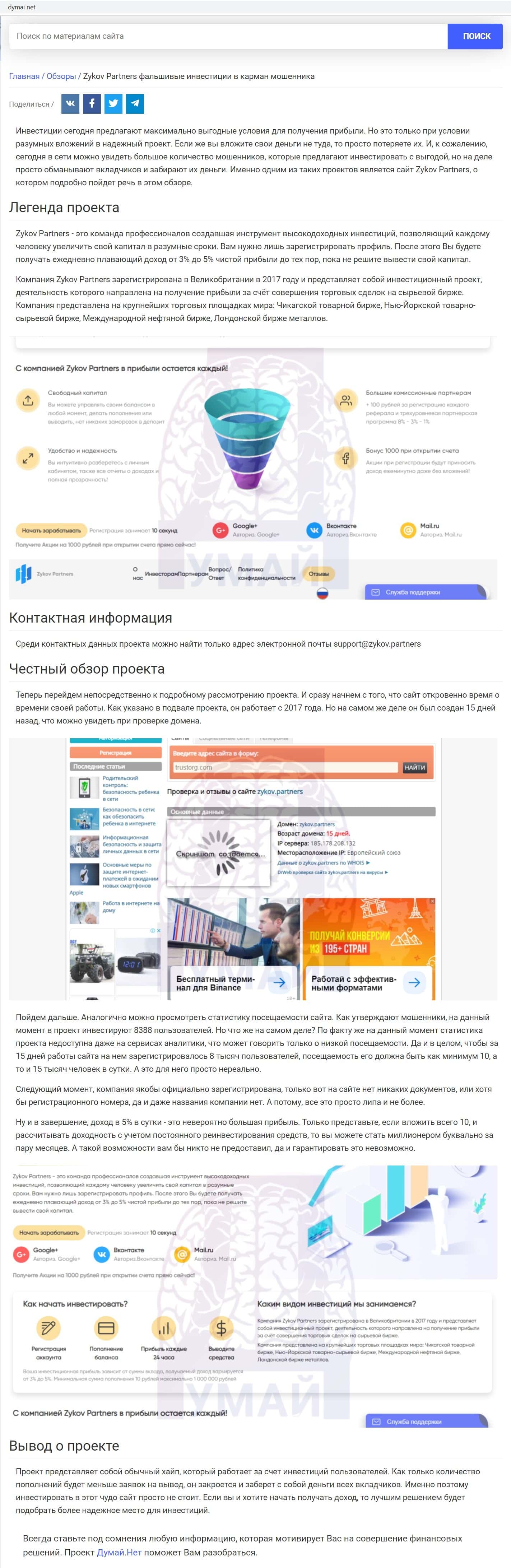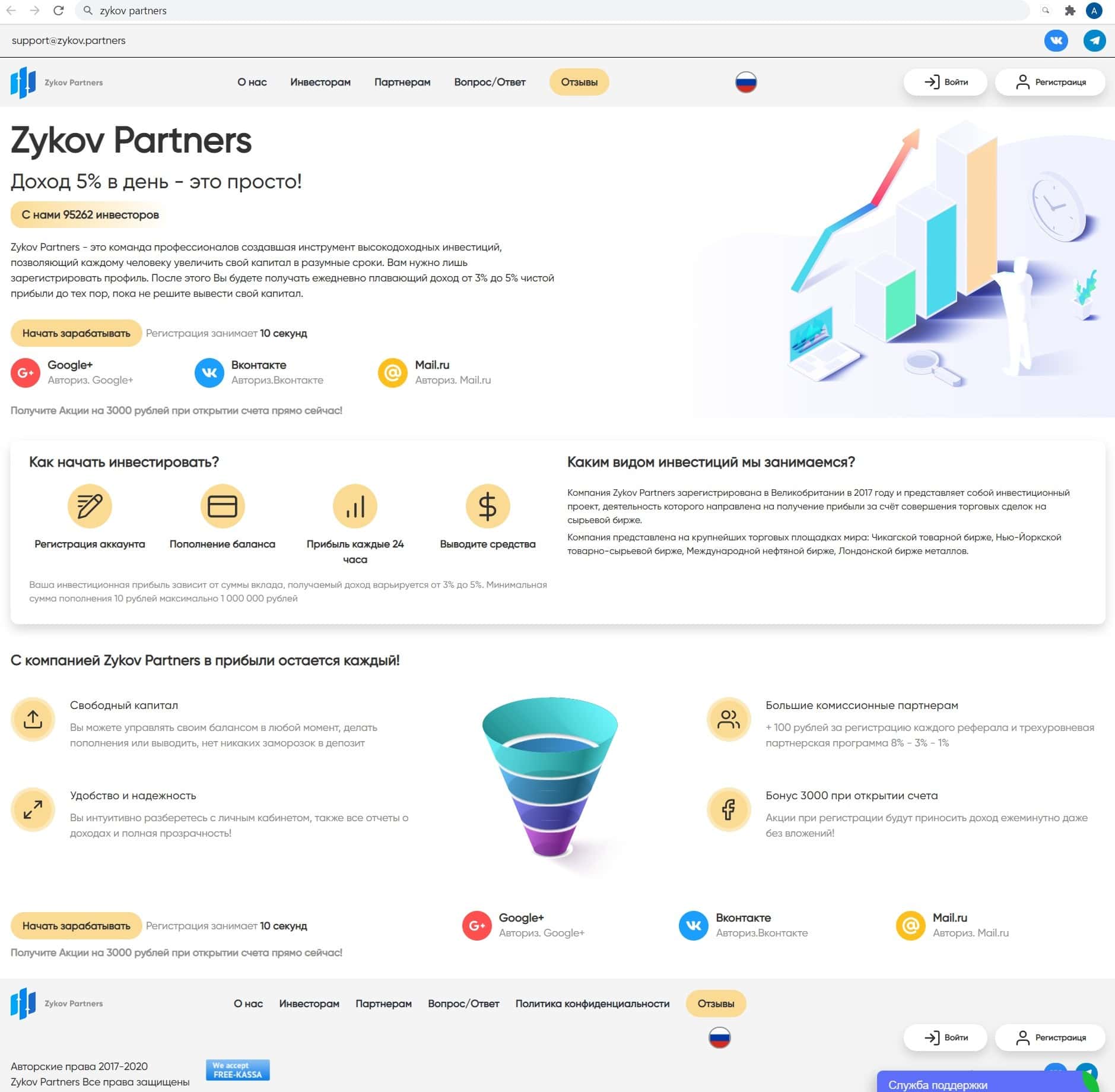 Zykov Partners создан с целью обворовывания жителей РФ и других стран бывшего социалистического лагеря, ниже опубликована жалоба на этот мошеннический проект.